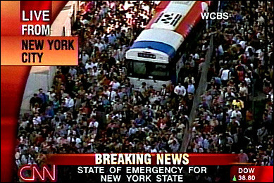美国各大电视网全部现场直播,从画面上看,纽约街道和高速公路大塞车,市民纷纷涌上街头,把主要街道挤得水泄不通。最新传来的消息说,纽约的电话、地铁、航空、交通指挥系统全部陷于停顿;曼哈顿的一个电厂和十四街地铁站变压器因为断电引发烟火,更引起市民忧虑。本社记者记者试图与纽约分部的记者电话联系,但无法联通。