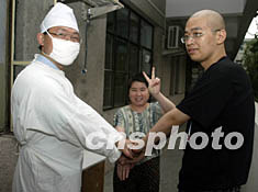 北京SARS医疗救治总指挥韩德民教授(中),8月15日到北京地坛医院看望16日出院的中国最后两名康复患者孙峥(右)、卢志艳,鼓励他们勇敢面对人生。中新社记者:任晨鸣