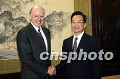 中新网北京9月3日电(记者齐彬)中国国务院总理温家宝今天下午在中南海紫光阁会见了到访的美国财政部长斯诺一行。
