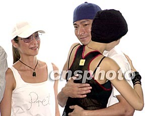 香港艺人梅艳芳9月5日在香港特意举行记者会,向传媒坦诚证实患上子宫颈癌,她表示将积极地接受治疗,并得到圈中好友鼓励支持。图为梅艳芳与刘德华拥抱。作者:邓庆乐