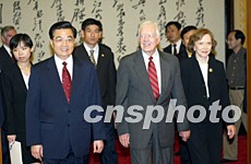 卡特表示他很高兴有机会再次访华同胡主席结识,他回顾了一九七九年他同邓小平副总理历史性的会晤以及后来观摩中国村民委员会成功进行选举的经历,他还介绍了卡特中心在许多国家开展的工作。