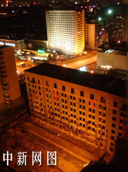 爆破前的中华全国总工会大楼。中新社记者 武仲林摄