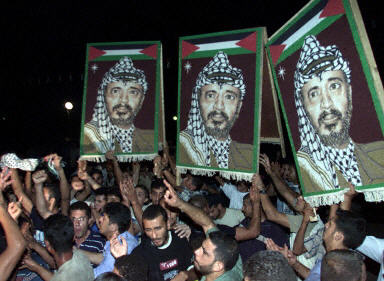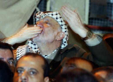 就在以色列做出上述决定的同时,阿拉法特依然受到数千支持者的拥戴,当他在周三走出办公总部时无数的支持者在向他欢呼。身旁有保镖保护的阿拉法特向支持者抛去飞吻,并做出胜利的姿式。在加沙城市中心,5000多人走上街头进行游行表达对阿拉法特的支持。(春风)