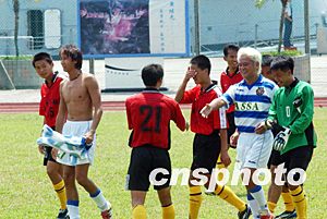 探访团成员和嘉宾上午首先观看了驻军足球队和香港明星队进行的一场精彩的足球友谊比赛,结果驻军足球队以六比三胜出。此外,他们还欣赏了军乐队员的演奏、侦察兵的捕俘拳、捕俘刀、擒拿与反擒拿等表演,参观了舰艇大队和模拟训练中心。