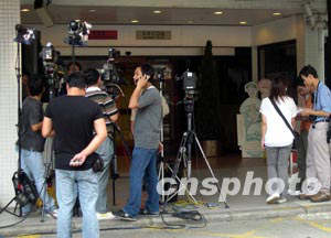 16日,香港一名34岁女病人在玛嘉烈医院留医,据初步测试显示,在她体内没发现SARS病毒。图为大批记者在医院等待最新消息。作者:谭达明