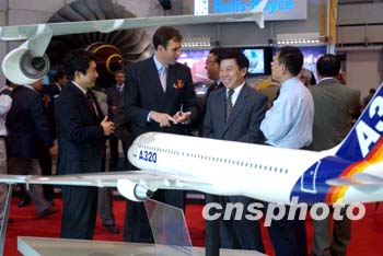 由空中客车公司生产的世界最大客机A380的模型(见左图),将在此次航展上首次亮相。其实际尺寸高24米多,长73米,翼展宽80米。据空客公关部顾主任介绍,A380目前正在生产中,此次展出的模型比例为1比20。555座的A380是世界上最先进、最宽敞和最高效率的飞机,将于2005年首飞,2006年投入商业运营。