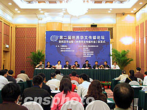9月20日,第二届世界华文传媒论坛暨《世界华文传媒年鉴》首发式在湖南长沙举行,中国新闻社副社长兼副总编辑刘北宪在会上宣布,由世界五大洲三十多个国家及港澳台地区近二百多名华文传媒巨头出席的第二届世界华文传媒论坛准备就绪。武仲林 摄