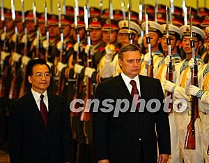中国国务院总理温家宝二十四日在北京举行仪式欢迎俄罗斯总理卡西亚诺夫访华。中新社记者:满会乔