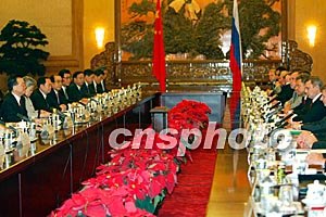 中国总理温家宝与俄罗斯总理卡西亚诺夫二十四日在北京举行会谈。中新社记者:满会乔