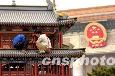 中新网9月25日电 天安门广场国庆花坛摆放工程将在今天完成。北京青年报报道说,中外游客将在天安门广场一睹“三峡大坝”、“万里长城”。