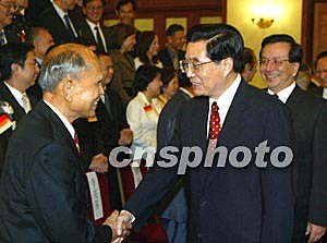 国家主席胡锦涛、副主席曾庆红二十七日在北京会见霍英东率领的香港工商界知名人士访问团一行。中新社记者:满会乔