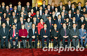 国家主席胡锦涛、副主席曾庆红等二十七日在北京会见香港工商界知名人士访问团并与团员合影。中新社记者:满会乔