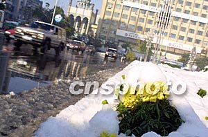 二十七日晚,受冷空气影响,入秋以来的第一场降雪悄然光临乌鲁木齐市,街道旁盛开的花朵上盖上了皑皑白雪,为乌鲁木齐的秋季增添了几分情趣。作者:刘新