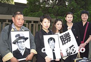 十三名侵华日军遗弃化武受害者向东京地方法院提起的索赔诉讼,九月二十九日下午一审判决,中国原告获得胜诉。判决下达后,作为原告的受害者家属在法院门前手捧亲人遗像百感交集。作者:王健