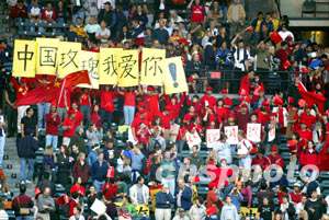 图:啦啦队打出横幅为中国队加油