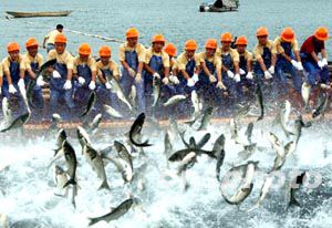 良好的生态环境使浙江千岛湖不仅成为著名的旅游胜地,同时也是淡水鱼十分丰富的地区。十月上旬,一年一度的巨网捕鱼成为了千岛湖旅游的另一新亮点。作者:李杭生