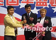 中新社广州十月十五日电(记者 郭军)正在广东访问的美国华盛顿州州长骆家辉今天上午在广东佛山市南海区里水鲜果批发市场参加了一个华盛顿苹果的推介活动,并为华盛顿苹果销售大王颁发了奖品,这是他此次为期一周的中国之行的重要内容之一。