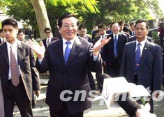 今天的澳门,阳光灿烂,气候宜人。大三巴牌坊前,游客游兴正浓。九时十分左右,曾庆红在唐家璇、廖晖、何厚铧等陪同下,来到大三巴牌坊参观。众多游客见到国家领导人,立刻涌向前来。曾庆红热情地向大家打招呼:“大家好!”