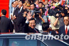 十月十八日下午,国家副主席曾庆红结束对澳门访问。图为他在澳门机场向送行市民挥手致意。中新社记者:潘索菲