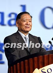 图:郑必坚在博鳌亚洲论坛2003年会上发表演讲