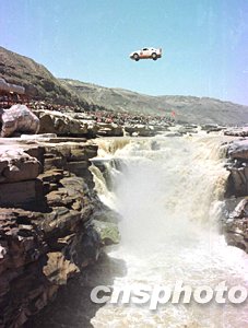 柯受良1997年驾车飞越黄河壶口瀑布。中新社记者:王瑶