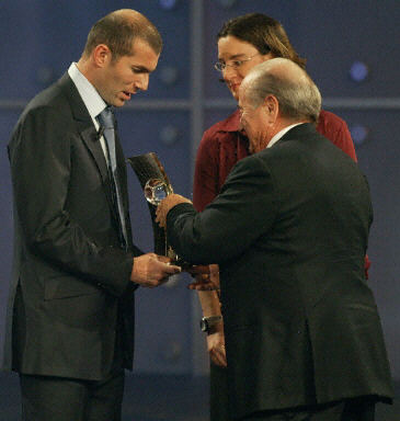 中新网12月15日电 国际足联2003年度颁奖仪式15日在巴塞尔开始举行,齐达内压过罗纳尔多与亨利,第3次当选世界足球先生。