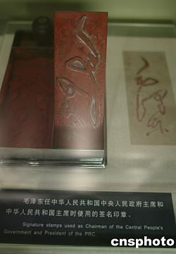 12月26日毛泽东诞辰110周年前夕,北京毛主席纪念堂中经过精心布置的“毛泽东展室”展出毛泽东任中华人民共和国中央人民政府主席时使用的“中华人民共和国中央人民政府之印”。中新社记者:任晨鸣