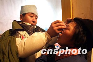 十二月二十三日二十二点十五分,位于重庆市开县境内的川东北气矿发生天然气井喷事故。在事故现场临时救助站内,医生通宵值班确保灾民及时就诊。作者:邹辉