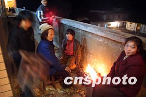 十二月二十三日二十二点十五分,位于重庆市开县境内的川东北气矿发生天然气井喷事故。当地灾民利用烤火取暖。作者:邹辉