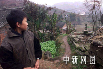 十岁的廖小川是从“死人堆”里爬出来的,如今他只有远远看着自己的家。重庆晚报供图