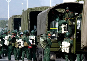 12月26日,武警重庆总队某部500名官兵紧急出发,参加川东北气矿“12·2 3”天然气井喷事故抢险救灾工作。新华社记者赵建伟摄