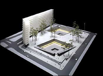 从去年四月开始,负责世贸重建的曼哈顿下城发展公司举行了全世界范围的世贸遗址纪念馆设计方案竞赛,收到了来自全球六十一个国家的五千二百零一件作品。评选委员会从中选出八件作品于去年十一月开始在纽约向公众展示。今天,由十三人组成的世贸遗址纪念馆方案评选委员会终于公布了他们的最后决定:“Reflecting Absence”将成为世贸遗址纪念馆的建设方案,但需要进行局部修改。中选方案的设计师迈克尔·阿拉德(Michael Arad)在得到消息后非常高兴,表示将不负众望。修改后的设计方案可望在下周公布于众。