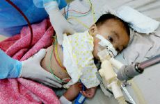 图:越南一名患禽流感的儿童在医院进行抢救