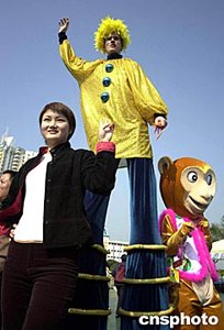 正月初一,深圳天气晴朗宜人,各旅游景点里游人如鲫,人们欢天喜地度新春。图为深圳华侨城欢乐谷景区举行的滑稽节上,幽默表演妙趣横生。作者:陈文