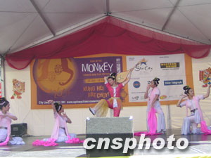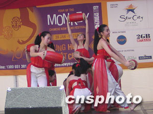 澳洲侨青社24日在悉尼中国城德信街举行盛大的新春联欢会,数以万计的华人华侨和各界人士出席了开幕仪式,并观看了精彩的文艺节目。此次新春联欢会一连两日,由北京艺术团、澳洲侨青社、悉尼西区华人协会以及黄河合唱团的艺人献演丰富多彩的歌舞和音乐节目,令悉尼各界人士耳目一新。中新社记者刘雨生摄