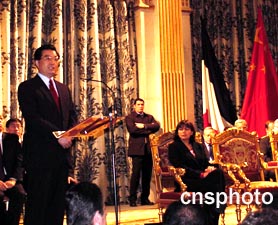 巴黎市政府二十八日上午举行隆重仪式,欢迎中国国家主席胡锦涛访法。巴黎市官员、议员、各国驻法使节和旅法华侨华人参加了欢迎仪式。蔚中摄