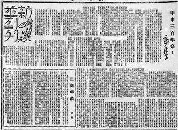 《甲申三百年祭》是一篇近二万字的史论,《新华日报》连载四天。相隔仅一天,1944月24日,国民党机关报《中央日报》即发表《纠正一种思想》的社论,抨击《甲申》鼓吹“战败主义和亡国思想”,叫嚷要“共同纠正这种思想,毫不姑息,毫不放松”。4月13日,该报又发表社论《论责任心》,责难《甲申》“渲染着亡国的怨望和牢骚”,并阿Q式地攻击所有以宋末、明末的历史进行爱国主义教育的文艺作品和史学论著。稍后,某出版社还搜集围攻《甲申》的文章,编为《关于〈甲申三百年祭〉及其他》,扬言“供防毒消毒之用”。