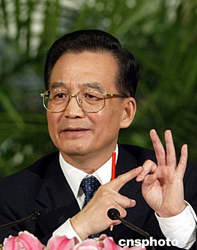 温家宝的话有点沙哑但充满感情:“我首先要感谢广大群众”,广大群众关心“两会”,关注政府工作,并通过各种渠道提出许多问题、意见和建议,“使我非常感动。”
