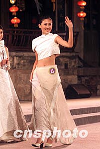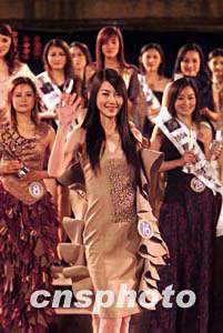 三月十五日晚,“古镇西塘”2004年国际旅游小姐大赛中国区总决赛在浙江西塘落幕,来自长春的九号选手钞俊男获得大赛中国区总决赛冠军。中新社记者:盛佳鹏