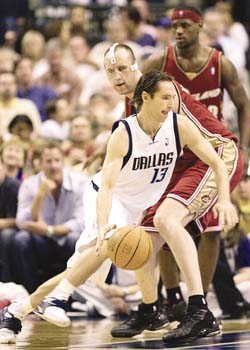 中新网4月1日电 诺维茨基和纳什昨天双双发威,率领达拉斯小牛队以126:109顶翻了克里夫兰骑士队,也为本队拿到了一张季后赛入场券。没有了埃弗森的费城76人队继续“当家作主”,以95:71结束了金州勇士队的7连胜狂奔。