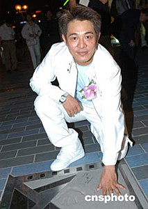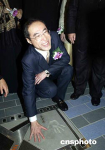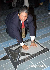 李连杰4月27日晚上在香港出席尖沙咀海滨长廊香港“星光大道”开幕典礼,并于“星光大道”上寻找到自己留手印处。作者:邓庆乐