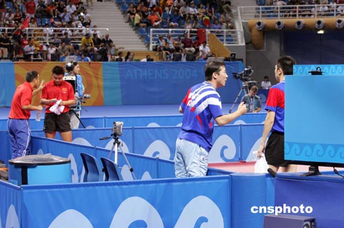 中新社雅典八月二十三日电 (记者 宋方灿)今天的奥运乒乓球男单决赛可谓扣人心弦,在一场技术与毅力的较量中,中国男单小将王皓不敌韩国的柳承敏,痛失金牌。赛后,中国男子乒乓球队主教练刘国梁称其在各个方面都处于下风,失败在所难免。