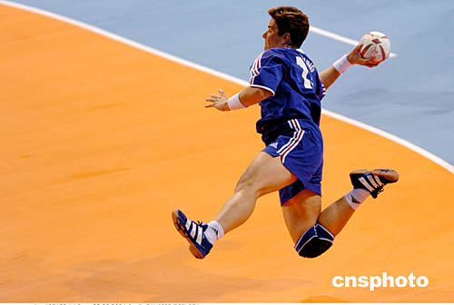 图为法国选手Isabelle Wendling在女子手球比赛中的精彩表现。