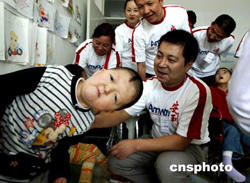 西宁市安利员工二十六日到该市儿童福利院看望这里的残疾儿童,并给孩子们送来生活用品。安利(中国)公司正在全国范围逐步实施他们资助贫困儿童、社会环保、公众健康的福利计划。中新社记者:宋吉河
