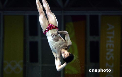 当地时间8月28日晚,在雅典奥运会跳水最后一项比赛--10米跳台决赛中,夺标呼声最高的“跳水王子”田亮意外失手,仅仅获得第三名。中新社记者:任晨鸣