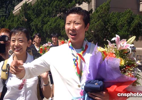 今天上午,在雅典取得全面胜利的中国奥运代表团最后一批团员返京。首都机场南停机坪上一时“星光璀璨”,回家的奥运健儿再次成为“焦点中的焦点”。