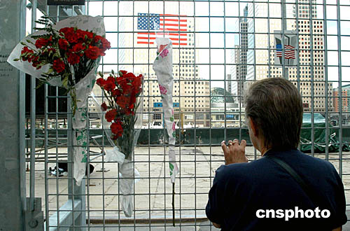 纽约世贸中心遗址举行“911”三周年纪念活动。作者:陈建