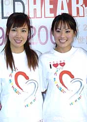 香港艺员杨洛婷[右]、李诗韵出席 “世界心脏日2004”活动。作者:洪少葵