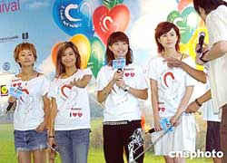 香港音乐组合COOKIES四名成员, 9月26日在香港跑马地马场出席 “世界心脏日2004”,并登台表演助兴。作者:洪少葵