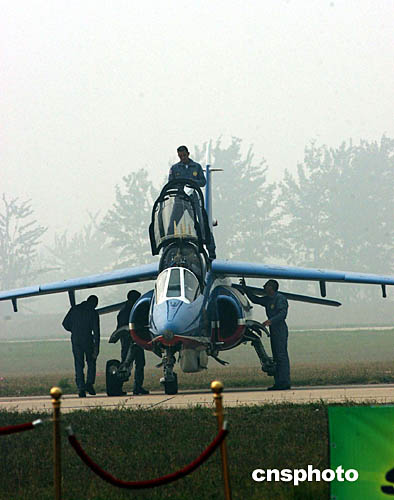 由天天气原因,七日下午在北京南苑机场举行的法国特技飞行表演被迫取消,中国跳伞大队的表演也一并取消。秋高气爽原本是北京秋天的特色,但今年国庆节后几天连日雾气朦朦,据说南苑机场今天的能见度只有一点五公里左右。今天到现场看表演的观众据悉约有五万人。中新社记者:王丽南